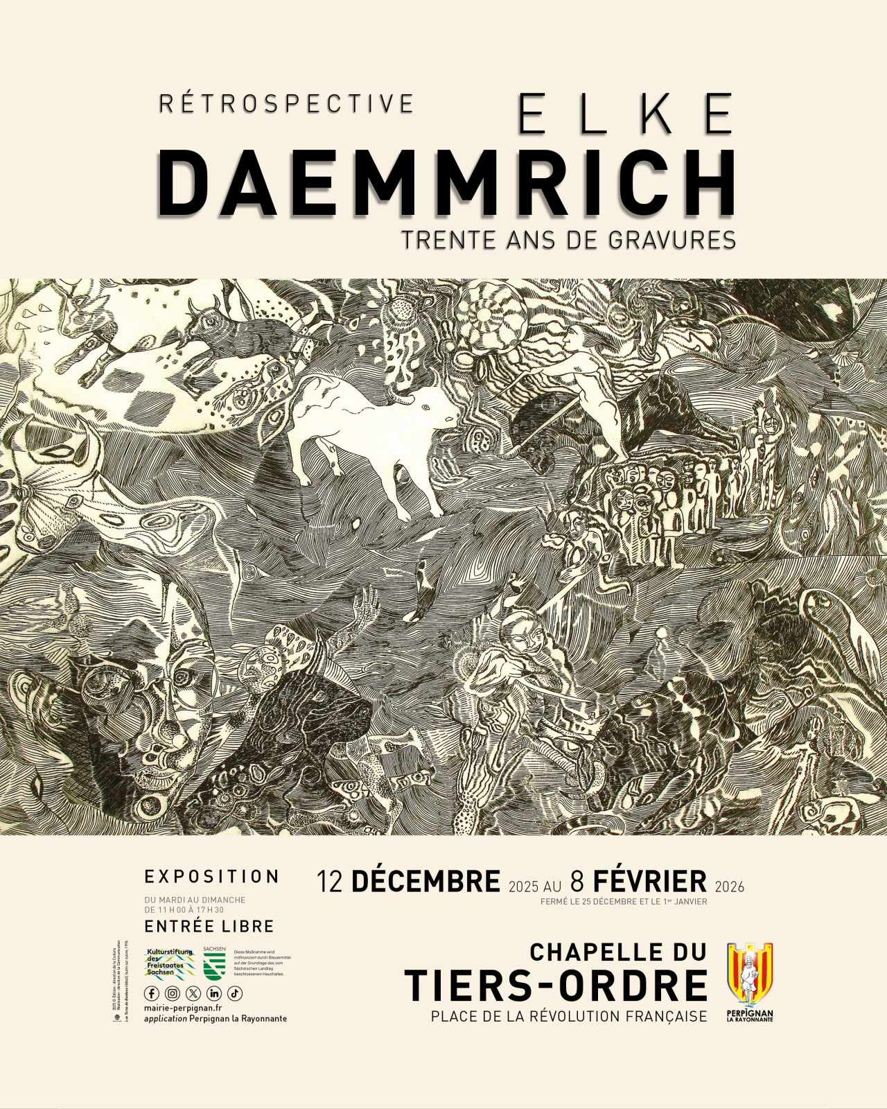 Exposition du 12 décembre 2025 au 8 Février 2026. Entrée Libre. Ouvert du mardi au dimanche de 11h00 à 17h 30, fermé le 25 décembre et le 1e janvier.