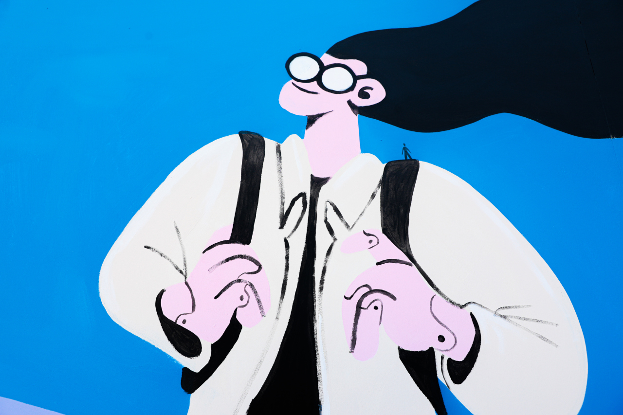 Margot Merandon est une artiste plasticienne inspirée qui travaille à Montpellier. Plusieurs de ses œuvres sont visibles dans l’espace public mais son talent s’exprime aussi au travers de différents médiums plus classiques. Empreint de poésie et d’humour, son univers manifeste le monde dans lequel elle voudrait vivre : une société queer, écoresponsable, multiculturelle et funky. Ses fresques sont aussi visibles à Sète, Perpignan et Bruxelles. (margotmerandon.com)