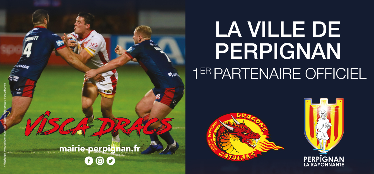 A l’occasion de la demi-finale de Super League DRAGONS CATALANS VS HULL KR*, la Mairie de Perpignan organise une distribution de masques, t-shirts et drapeaux, mercredi 29 septembre 2021, de 11h00 à 13h00, dans le patio de l’Hôtel de Ville.