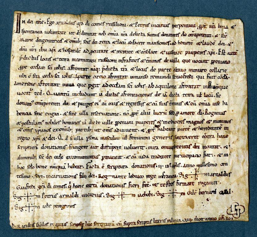 Fondé en 1116 par le régent du comté de Roussillon Arnaud Gausfred, placé primitivement sous l’égide de la confrérie hospitalière « Saint-Blaise », l’hôpital des pauvres de Perpignan, dédié en 1266 à Saint-Jean, s’inscrit dans un parcellaire urbain peu connu de la ville, celui du Xe-XIIe siècle, les reconstructions s’étant succédé au fil des siècles sur cet espace restreint.