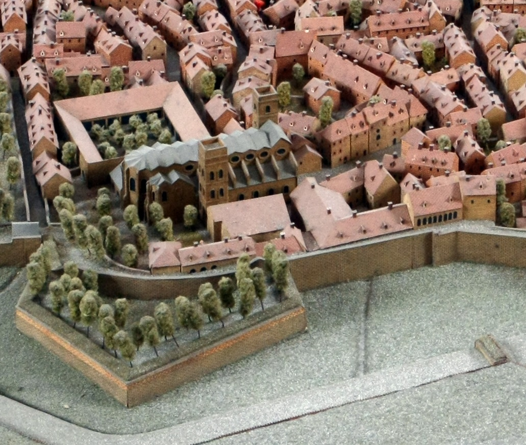 Si l’on ne sait rien de la structure de l’hôpital primitif, nous en avons un premier aperçu dans le plan relief. De plus, les documents retrouvés nous permettent aussi de nous faire une idée de son aspect par la suite, à partir du XVIIIe siècle.