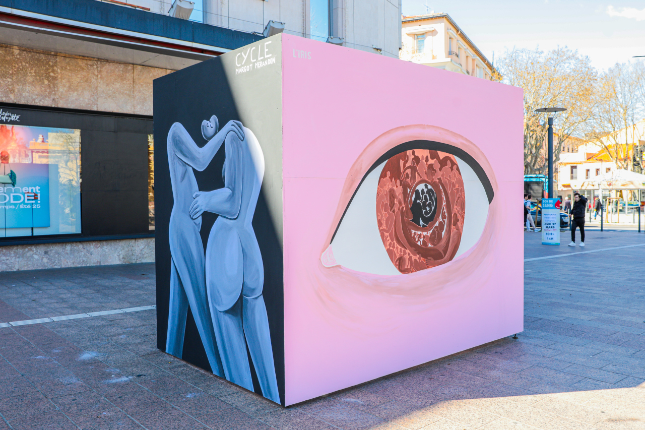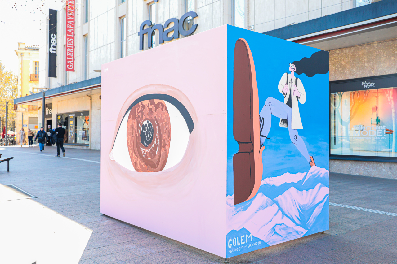 Margot Merandon est une artiste plasticienne inspirée qui travaille à Montpellier. Plusieurs de ses œuvres sont visibles dans l’espace public mais son talent s’exprime aussi au travers de différents médiums plus classiques. Empreint de poésie et d’humour, son univers manifeste le monde dans lequel elle voudrait vivre : une société queer, écoresponsable, multiculturelle et funky. Ses fresques sont aussi visibles à Sète, Perpignan et Bruxelles. (margotmerandon.com)