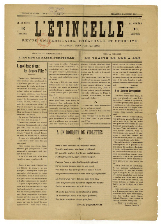 D’après Fabien Larue : « Les instituteurs au front », et Madeleine Souche : « Les Collégiens de Perpignan, journalistes de la Grande Guerre », Perpignan pendant la Première Guerre mondiale, Nouvelles Editions Sutton, Tours, octobre 2018.