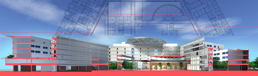 La conception du nouveau centre hospitalier général (CHG) se divise en 3 tranches distinctes.