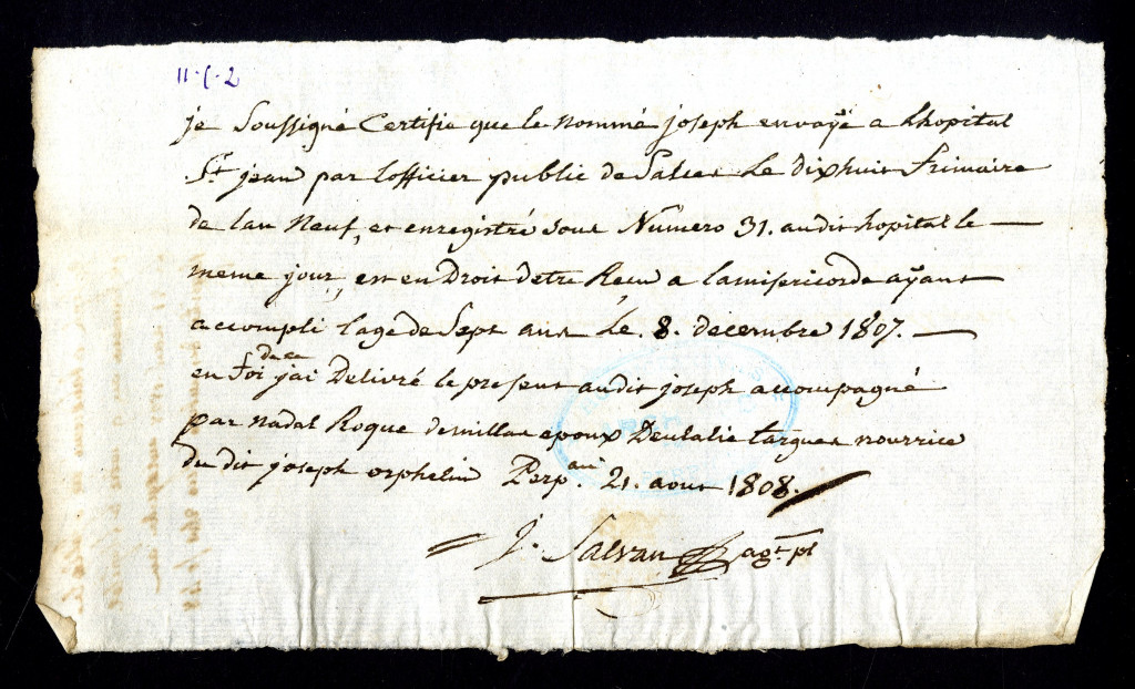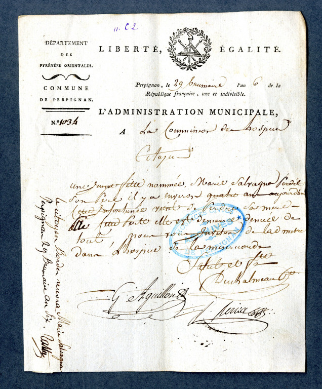 En 1793, pendant la guerre contre l’Espagne, les bâtiments de la Miséricorde furent réquisitionnés et convertis en hôpital. Les filles furent hébergées chez la comtesse de Blanes (hôtel de Lazerme, actuel musée Rigaud) puis au couvent Sainte-Catherine, les garçons chez les Jésuites (actuelle place de la République), avant d’être dispersés dans la ville l’année suivante. La Miséricorde rouvrit ses portes en 1796.