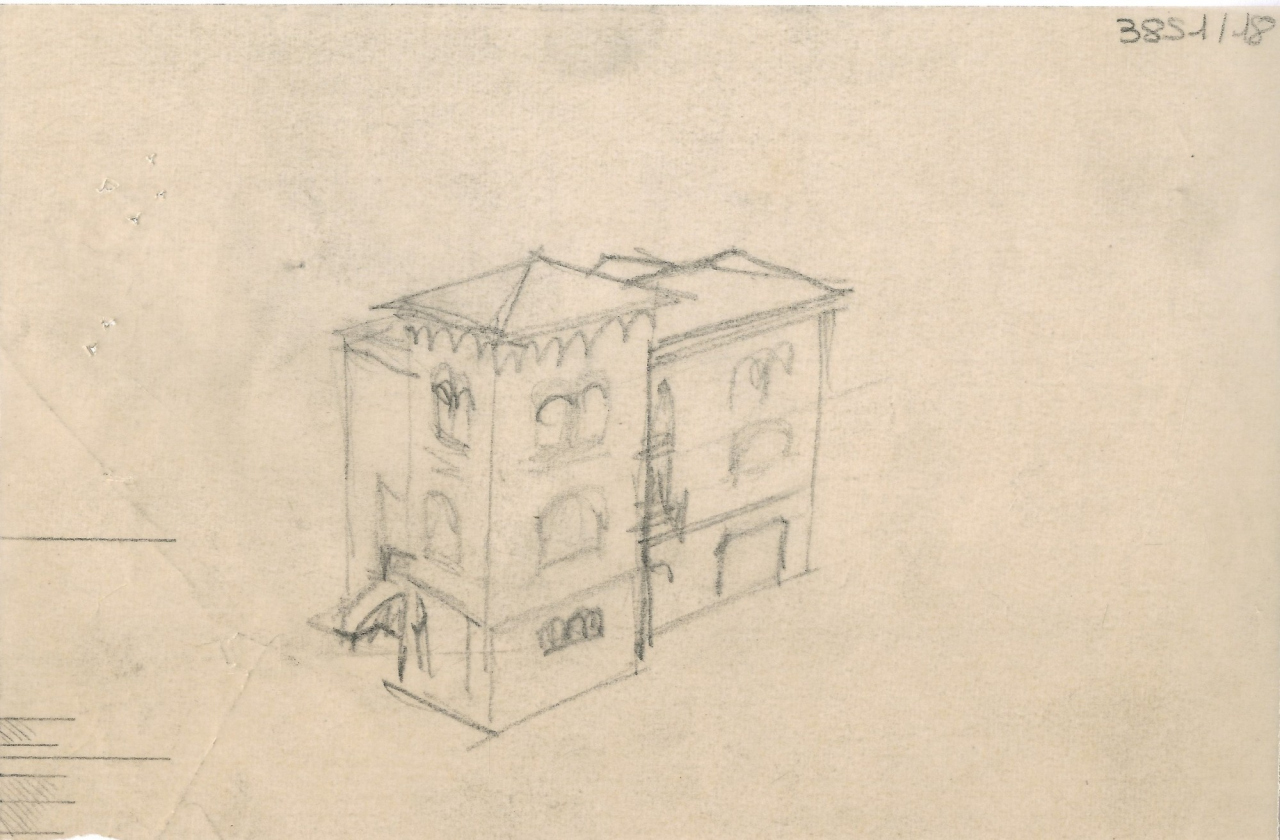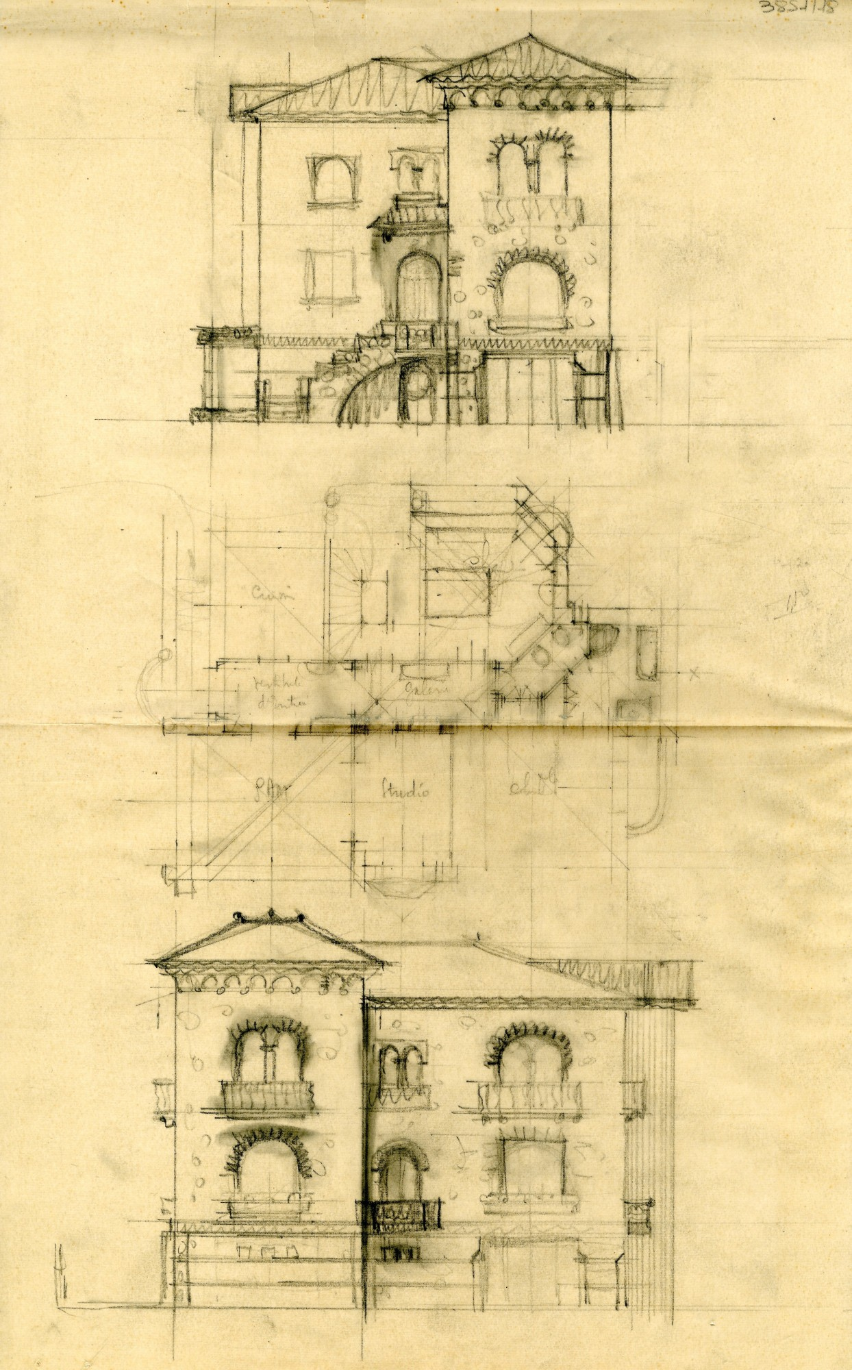 Le projet de départ est de style régionaliste, avec des arcatures décoratives.