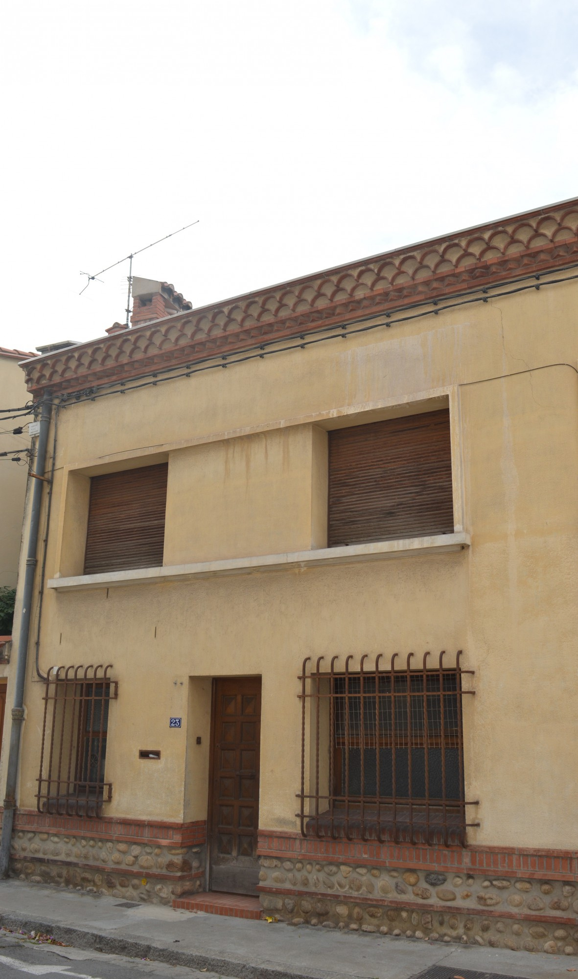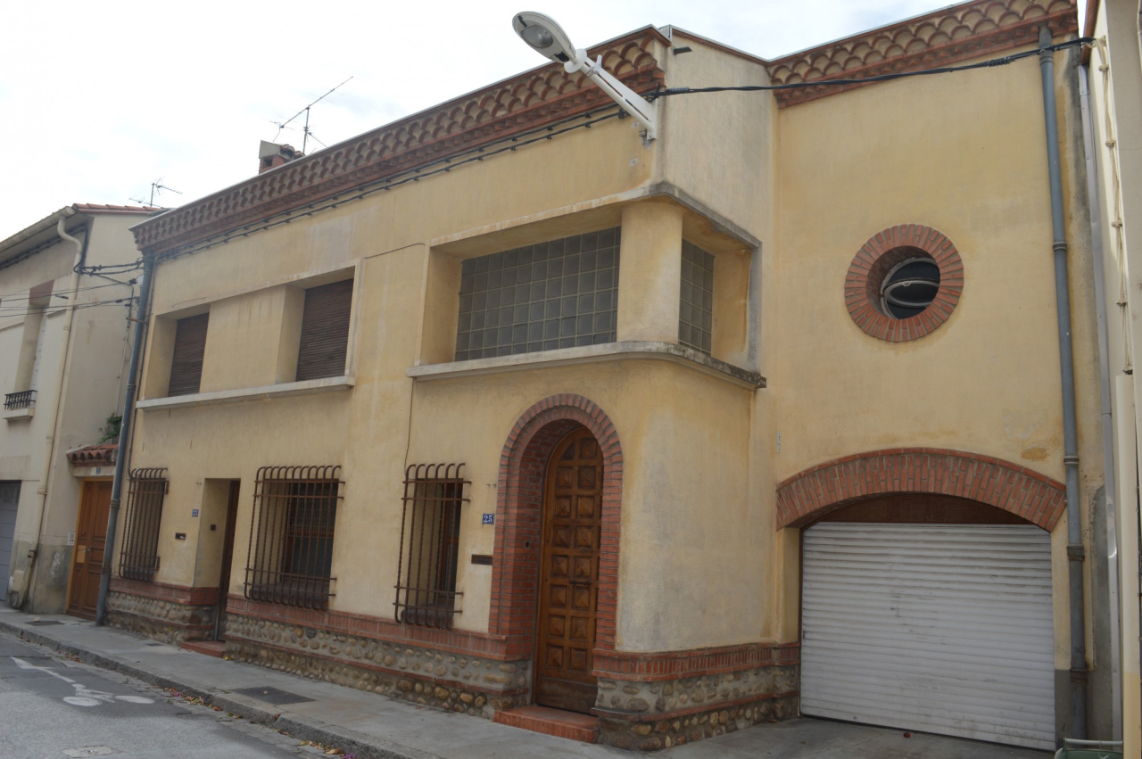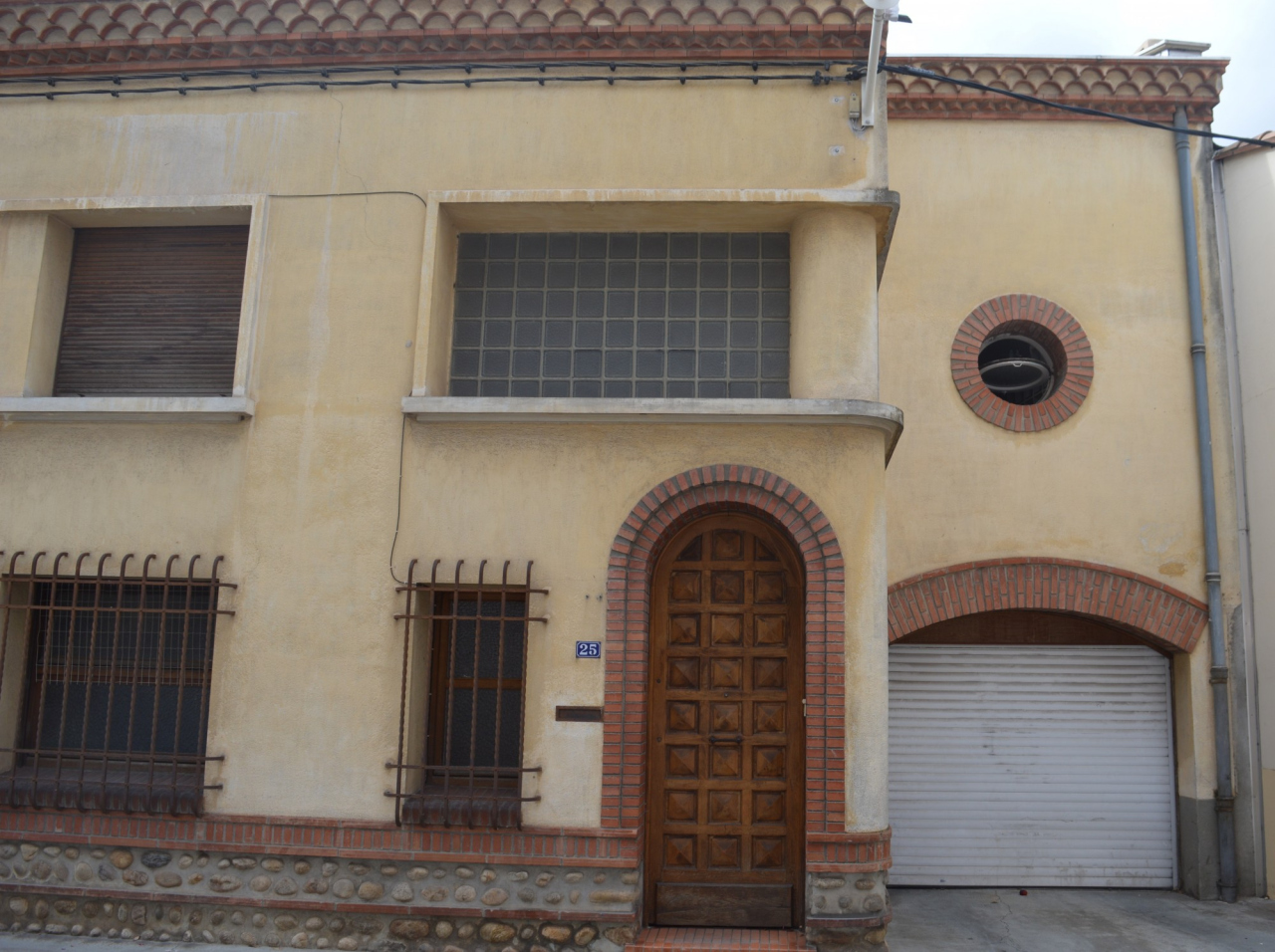 Description : Style Art déco avec les fenêtres géminées et l'oculi au-dessus du garage de l'habitation 25.