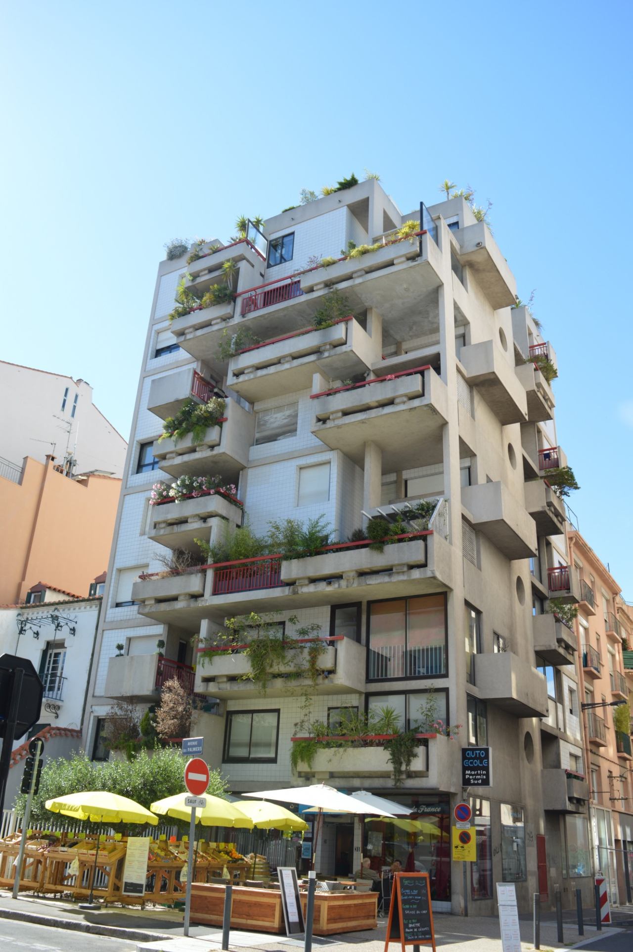Description : Immeuble barre, jardinières en terrasses.