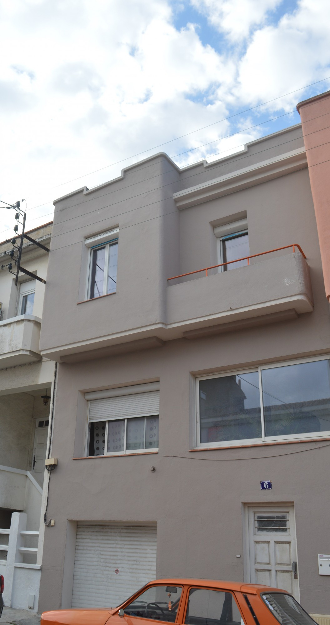 Description : Habitations individuelles en bandes, disposition identique de la façade.