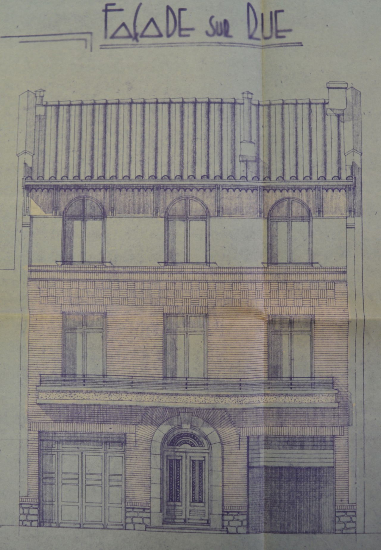 Description : Style art déco par le balcon en forme de ruban et le contraste du béton avec la brique.
