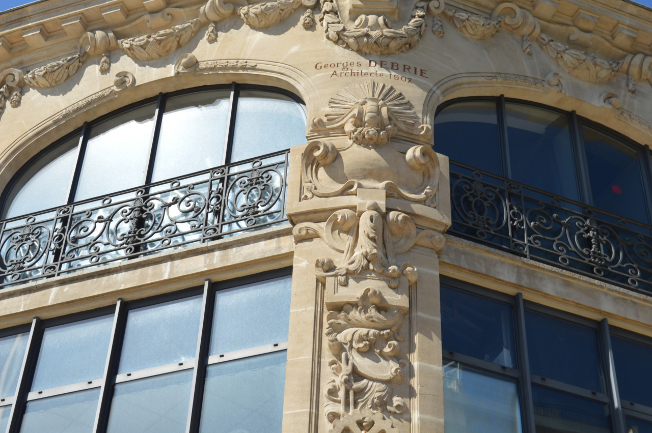 Description : La façade est en verre et pierre de taille, la structure en fer et béton.