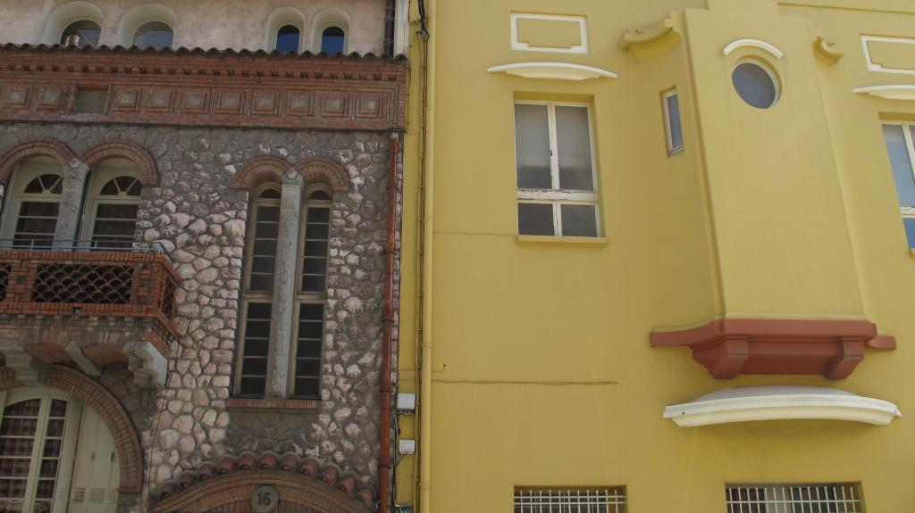 Dans ce carrefour du nouveau quartier nord de la ville, une diversité d'options stylistiques de l'architecture du début du 20e siècle est réunie : l'historicisme de racine classique de la maison Nicolau (N°10 rue B.., 1922), la grande manière de l'immeuble de rapport qui lui fait face (N° 11 rue J., 1915), l’immeuble au répertoire médiévalisant d’Henri Sicart (N° 13 rue J.), le régionalisme roussillonnais à la manière de Mas Chancel dans l'hôtel particulier (N° 16  rue J., 1916), enfin l'épuration géométrique et la volonté monumentale dans l'édifice de l'Union des commerces des architectes Alfred Joffre et Raoul Castan (N° 9 rue B., 1925).