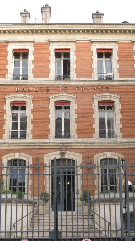 La place de la Banque –dite Jean Payra en 1937- fut aménagée tout près de la Porte de la République, ouverte en 1862 dans le rempart de la Ville-Neuve. Après la démolition des remparts, la façade de la Banque de France dessinée par l’architecte Claudius Trénet en 1876, inspirée du style Louis XIII, dialogua avec la Maison Duffau (Café la Rotonde), édifiée en 1908 sur les terrains des remparts arasés et avec le bâtiment qui lui fait face, œuvre plus moderne de Gustave Violet, orné de scènes de la vie rurale en bas-relief.