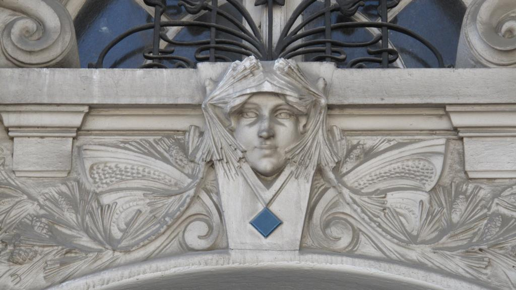 Au 14 du boulevard Wilson, la façade en angle de l’hôtel particulier achevé en 1917, de composition assez conventionnelle, révèle un programme décoratif riche et surprenant. Le thème de la branche et de la pomme de pin, récurrent dans l'architecture Fin de Siècle, est omniprésent sous des formes et des matériaux différents (frises de faïence polychrome, reliefs épousant l'arrondi de la façade). Au-dessus de l'entrée la représentation d'un visage féminin aux accents symbolistes complète l'ensemble. Les sculptures sont d’Alexandre Guénot.