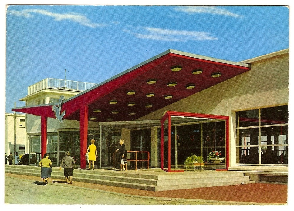L'architecture publique de la période, tout en restant modeste, ne renonce pas aux programmes et aux enjeux du temps : la nouvelle architecture hospitalière - Clinique Roussillonnaise - l’architecture liée aux transports routiers - la gare routière des Courriers Catalans - et l'architecture aéroportuaire - aérodrome de la Llabanère - en témoignent. Ce sont des architectures utilitaires mais aussi des architectures iconiques d'une modernité qui petit à petit perd son élan avant-gardiste pour devenir modernité tardive : l'architecture du Palais de Congrès dans sa version d'origine puis dans sa réfection - introduisant des lignes obliques et des matériaux autres que le béton, l’acier et le verre - en est un bon exemple.