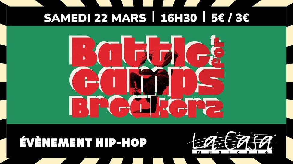 Le samedi 22 mars, plongez dans l’énergie de la danse avec un battle Hip-Hop au cœur de la solidarité ! Organisé avec l'appui de Casa Musicale Perpignan, cet événement réunira danseurs et spectateurs pour une journée de partage et de soutien aux danseurs palestiniens de Camps Breakerz.