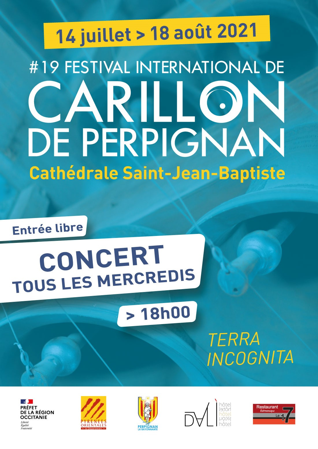 Pour sa dix-neuvième édition, du 14 juillet au 18 août 2021, autour du thème « Terra incognita », le festival programme six carillonneurs français, européens et étrangers.