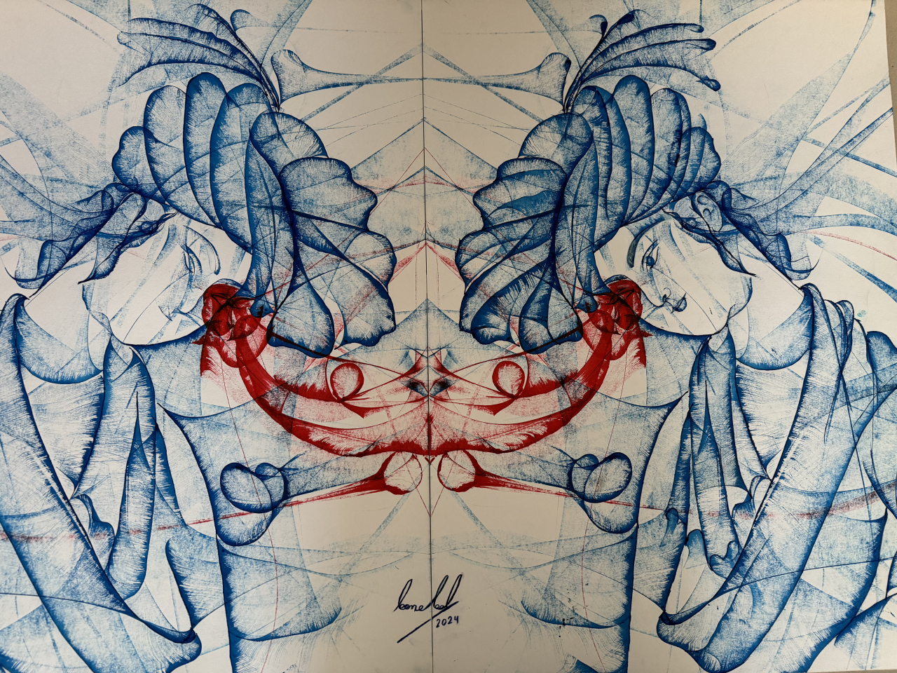 Les œuvres au fil et à l’encre de Bamdad Hosseinkhani traitent d’un sujet complexe qui préoccupent les philosophes depuis l’antiquité. Notre regard sur autrui, nos différences et leur acceptation en sont les fondements. Mais comment ne pas nous détourner par peur de ce qui nous est étranger ? Dans ses double-portraits, l’artiste tente d’apporter une réponse en nous confrontant à notre nature commune par-delà nos différences. Son travail graphique se situe entre tradition et modernité. Il y a quelque chose d’universel, un caractère intemporel où se mêlent présent et passé, une plongée dans l’âme humaine, une traversée du miroir pour voir au-delà des apparences.