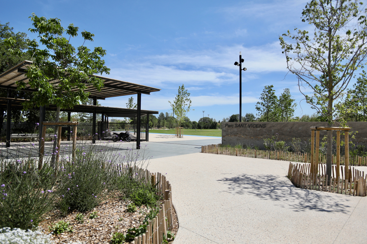 L'extension du Parc Sant Vicens est complétement intégrée à l’aménagement existant, d’un point de vue paysager et fonctionnel. Cet espace de loisirs, constitue un véritable poumon vert, un lien entre les quartiers et un lieu de vie pour les usagers. L'aménagement a été rendu au public samedi 03 avril 2021 et a rencontré un grand succès le week-end de Pâques. L'aménagement a consisté à la :