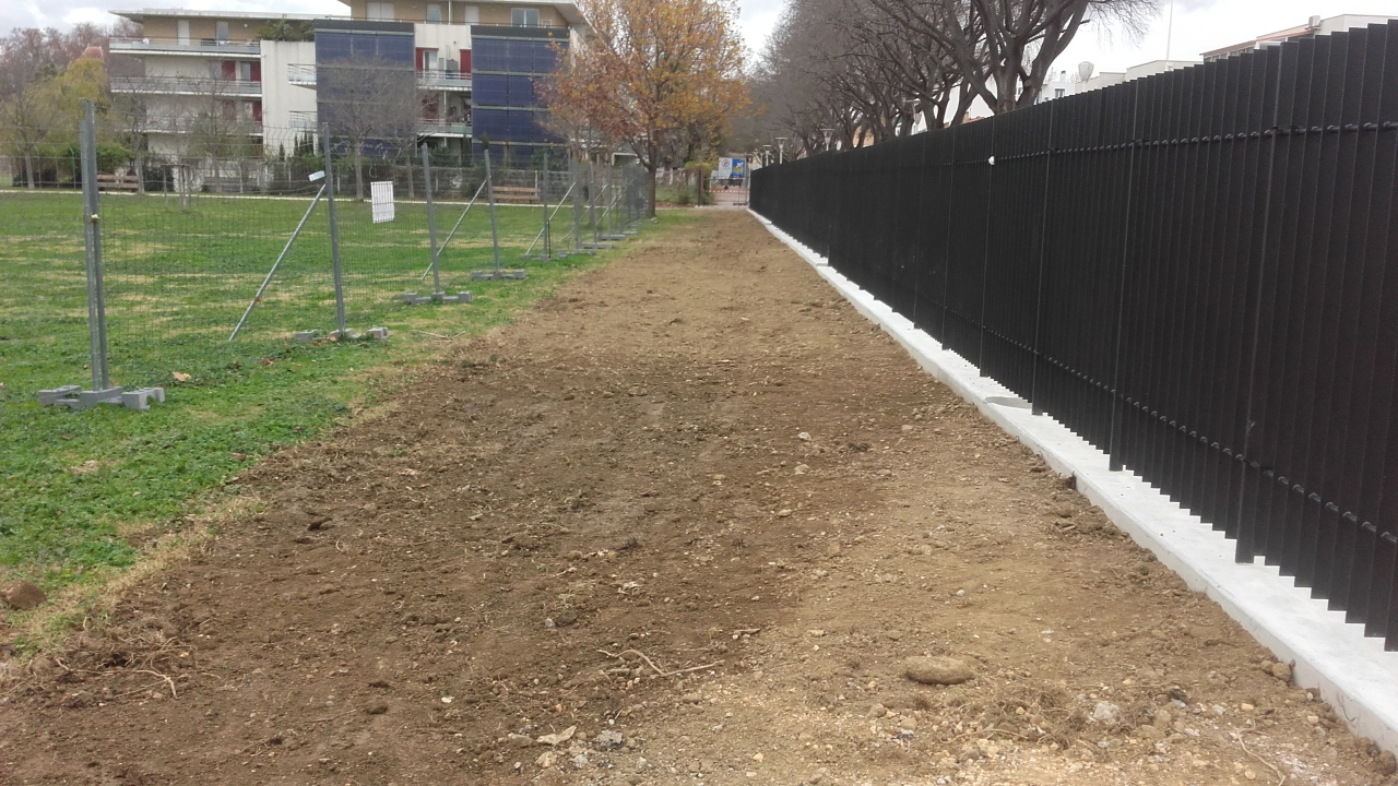 Pose d’une clôture périphérique de qualité. Cette installation permet de sauvegarder les équipements de jeux et loisirs, et de réglementer les horaires d’accès d’une grande partie du parc et une meilleure gestion de l’espace.