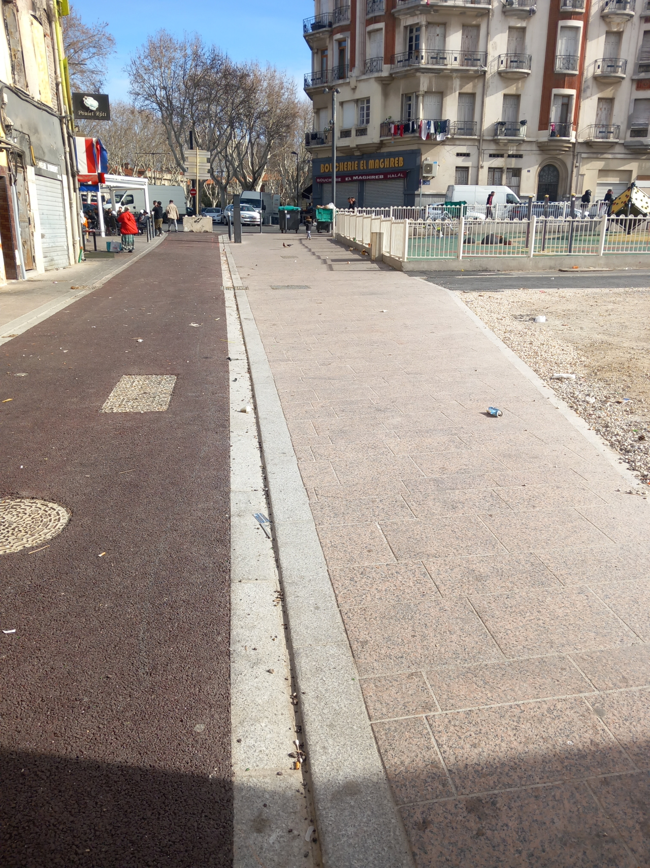 Véritable lieu de centralité du quartier Saint Jacques, animée par ses nombreux commerces et très fréquentée par les piétons, la rue Lucia souffrait d’un manque de mise en valeur par la vétusté de ses matériaux de revêtement. Les trottoirs et la chaussée présentaint des signes de dégradations et de déformations importants. L’embellissement de la rue Llucia a été réalisé à l’identique de la rue du Maréchal Foch ; les trottoirs sont repris avec des dalles en granit rose de la clarté et la chaussée en enrobé clair de type porphyre. Les trottoirs sont de même niveau que la chaussée simplement séparés par un caniveau afin de faciliter l’écoulement des eaux pluviales de ruissellement.